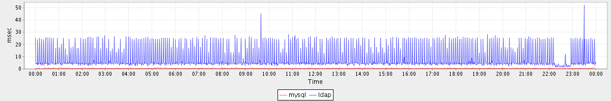 avg(mysql) = 0.24 avg(ldap) = 7.88