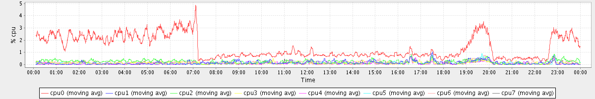 avg(cpu0) = 1.42 avg(cpu1) = 0.15 avg(cpu2) = 0.24 avg(cpu3) = 0.13 avg(cpu4) = 0.08 avg(cpu5) = 0.10 avg(cpu6) = 0.16 avg(cpu7) = 0.09