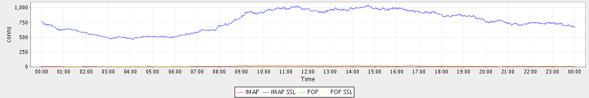 avg(IMAP) = 8.36 avg(IMAP SSL) = 772.10 avg(POP) = 0.00 avg(POP SSL) = 9.49