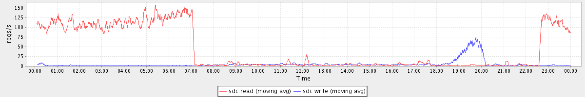 avg(sda2 read) = 0.81 avg(sda2 write) = 7.13