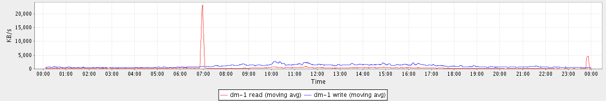 avg(dm-1 read) = 36.90 avg(dm-1 write) = 181.38