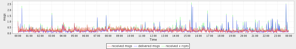avg(received msgs) = 0.27 avg(delivered msgs) = 0.25 avg(received x rcpts) = 0.33