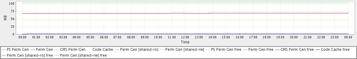 avg(PS Perm Gen) = 0.00 avg(Perm Gen) = 0.00 avg(CMS Perm Gen) = 102.31 avg(Code Cache) = 46.31 avg(Perm Gen [shared-ro]) = 0.00 avg(Perm Gen [shared-rw]) = 0.00 avg(PS Perm Gen free) = 0.00 avg(Perm Gen free) = 0.00 avg(CMS Perm Gen free) = 68.41 avg(Code Cache free) = 1.50 avg(Perm Gen [shared-ro] free) = 0.00 avg(Perm Gen [shared-rw] free) = 0.00