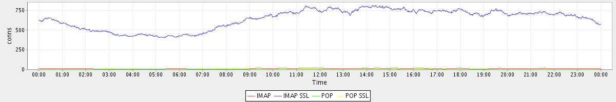 avg(IMAP) = 11.65 avg(IMAP SSL) = 639.17 avg(POP) = 0.51 avg(POP SSL) = 9.98