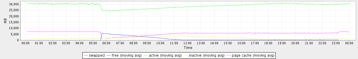 avg(swapped) = 0.00 avg(free) = 898.03 avg(active) = 28814.87 avg(inactive) = 1760.94 avg(page cache) = 5678.00