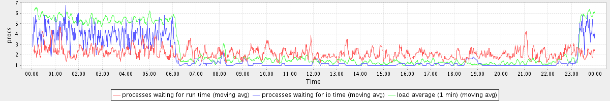 avg(processes waiting for run time) = 1.32 avg(processes waiting for io time) = 1.19 avg(load average (1 min)) = 2.56