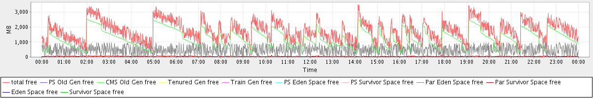 avg(total free) = 1768.86 avg(PS Old Gen free) = 0.00 avg(CMS Old Gen free) = 1246.18 avg(Tenured Gen free) = 0.00 avg(Train Gen free) = 0.00 avg(PS Eden Space free) = 0.00 avg(PS Survivor Space free) = 0.00 avg(Par Eden Space free) = 480.61 avg(Par Survivor Space free) = 42.06 avg(Eden Space free) = 0.00 avg(Survivor Space free) = 0.00