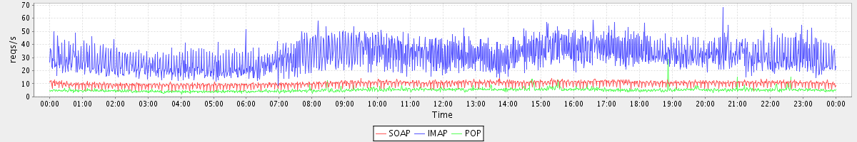 Host zm08.stanford.edu: Mailboxd: Request Rate by Client Protocol