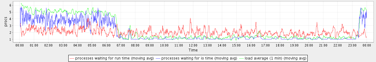 avg(processes waiting for run time) = 1.27 avg(processes waiting for io time) = 1.22 avg(load average (1 min)) = 2.44