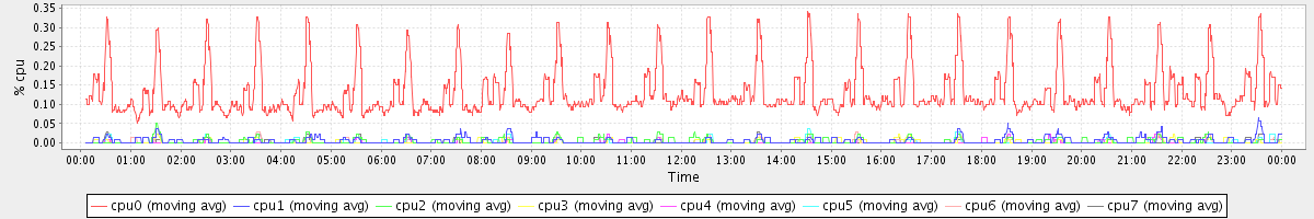 avg(cpu0) = 0.13 avg(cpu1) = 0.01 avg(cpu2) = 0.00 avg(cpu3) = 0.00 avg(cpu4) = 0.00 avg(cpu5) = 0.00 avg(cpu6) = 0.00 avg(cpu7) = 0.00