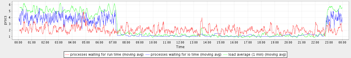 avg(processes waiting for run time) = 1.18 avg(processes waiting for io time) = 1.37 avg(load average (1 min)) = 2.58