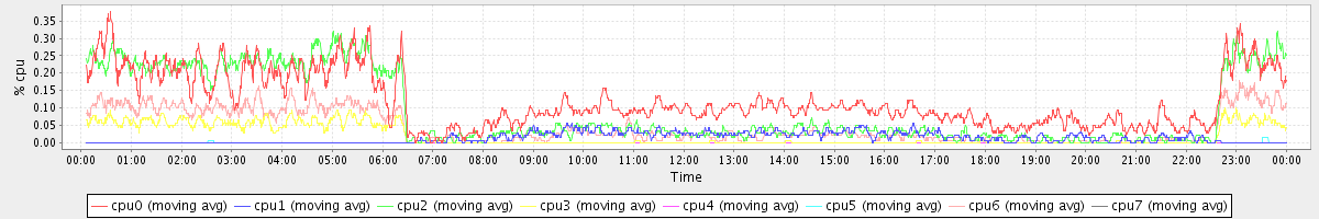 avg(cpu0) = 1.29 avg(cpu1) = 0.13 avg(cpu2) = 0.21 avg(cpu3) = 0.13 avg(cpu4) = 0.06 avg(cpu5) = 0.08 avg(cpu6) = 0.14 avg(cpu7) = 0.07