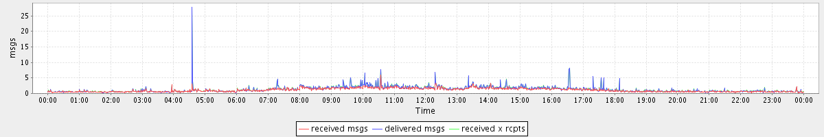 avg(received msgs) = 1.07 avg(delivered msgs) = 1.26 avg(received x rcpts) = 1.31