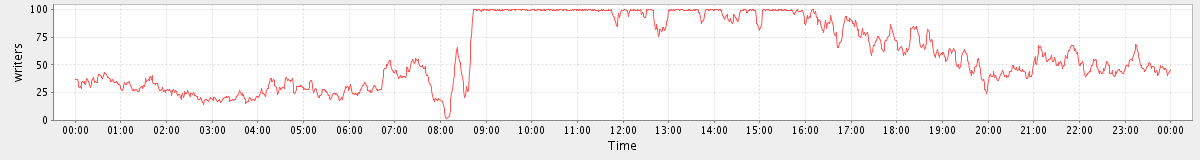 avg(sda read) = 30.48 avg(sda write) = 56.74