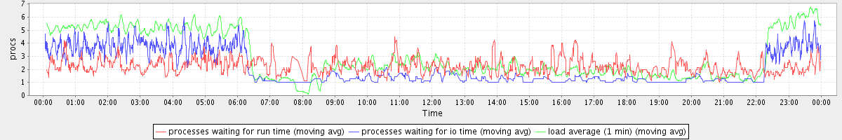 avg(processes waiting for run time) = 1.42 avg(processes waiting for io time) = 1.42 avg(load average (1 min)) = 3.00