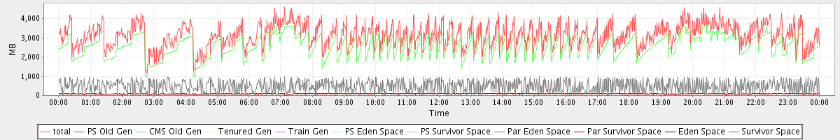 avg(total) = 3145.18 avg(PS Old Gen) = 0.00 avg(CMS Old Gen) = 2573.71 avg(Tenured Gen) = 0.00 avg(Train Gen) = 0.00 avg(PS Eden Space) = 0.00 avg(PS Survivor Space) = 0.00 avg(Par Eden Space) = 480.86 avg(Par Survivor Space) = 90.60 avg(Eden Space) = 0.00 avg(Survivor Space) = 0.00
