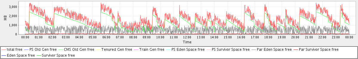 avg(total free) = 1740.86 avg(PS Old Gen free) = 0.00 avg(CMS Old Gen free) = 1211.81 avg(Tenured Gen free) = 0.00 avg(Train Gen free) = 0.00 avg(PS Eden Space free) = 0.00 avg(PS Survivor Space free) = 0.00 avg(Par Eden Space free) = 484.70 avg(Par Survivor Space free) = 44.34 avg(Eden Space free) = 0.00 avg(Survivor Space free) = 0.00