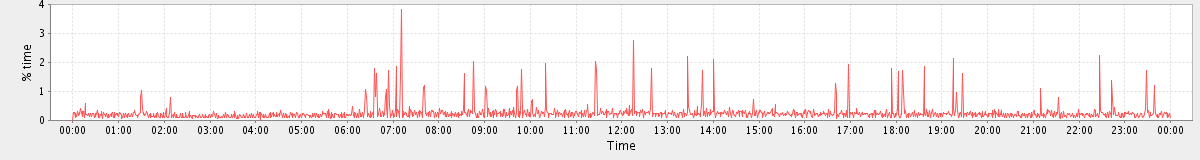 avg(user) = 11.25 avg(sys) = 1.10 avg(idle) = 82.40 avg(iowait) = 4.92 avg(nice) = 0.00 avg(irq) = 0.03 avg(softirq) = 0.30