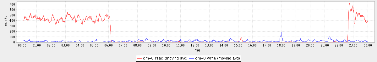 avg(dm-0 read) = 143.57 avg(dm-0 write) = 21.85