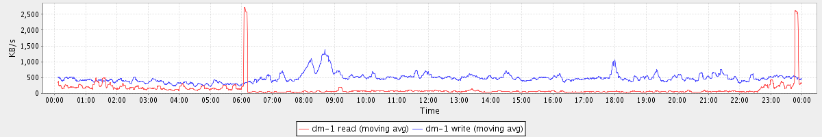 avg(dm-0 read) = 2858.38 avg(dm-0 write) = 87.34