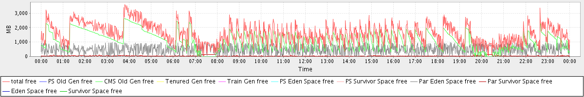 avg(total free) = 1588.42 avg(PS Old Gen free) = 0.00 avg(CMS Old Gen free) = 1066.35 avg(Tenured Gen free) = 0.00 avg(Train Gen free) = 0.00 avg(PS Eden Space free) = 0.00 avg(PS Survivor Space free) = 0.00 avg(Par Eden Space free) = 489.58 avg(Par Survivor Space free) = 32.50 avg(Eden Space free) = 0.00 avg(Survivor Space free) = 0.00