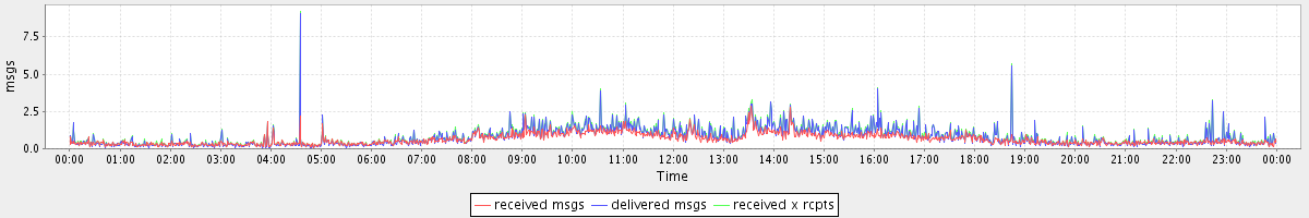 avg(received msgs) = 0.63 avg(delivered msgs) = 0.77 avg(received x rcpts) = 0.84