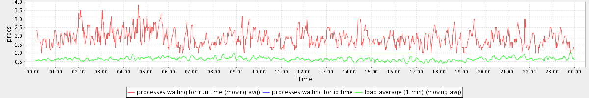 avg(processes waiting for run time) = 0.83 avg(processes waiting for io time) = 0.00 avg(load average (1 min)) = 0.65