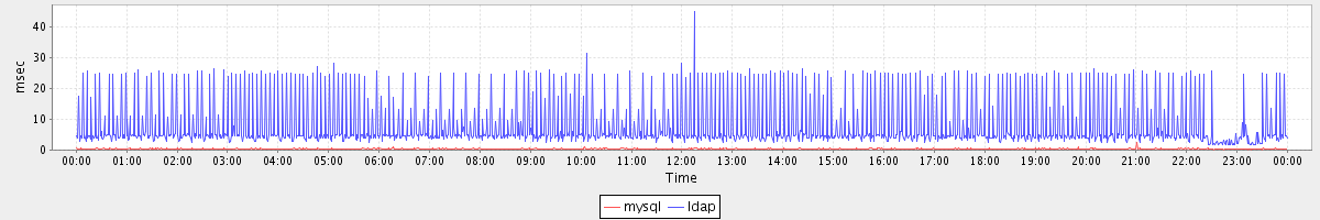 avg(mysql) = 0.27 avg(ldap) = 7.54