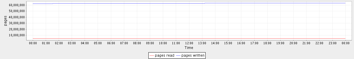 avg(pages read) = 4686398.58 avg(pages written) = 63080109.58