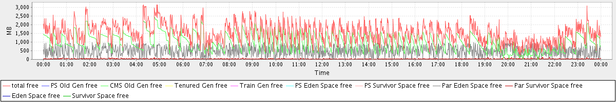 avg(total free) = 1506.81 avg(PS Old Gen free) = 0.00 avg(CMS Old Gen free) = 987.79 avg(Tenured Gen free) = 0.00 avg(Train Gen free) = 0.00 avg(PS Eden Space free) = 0.00 avg(PS Survivor Space free) = 0.00 avg(Par Eden Space free) = 490.75 avg(Par Survivor Space free) = 28.26 avg(Eden Space free) = 0.00 avg(Survivor Space free) = 0.00