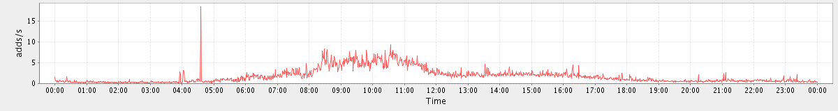 max(MsgActionRequest.move) = 334.00 max(SearchRequest) = 349.00 max(GetContactsRequest) = 896.00 max(MsgActionRequest.delete) = 894.00 max(GetInfoRequest) = 308.00 max(GetDomainInfoRequest) = 309.00 max(GetFolderRequest) = 1469.00 max(SyncRequest) = 2679.00 max(AuthRequest) = 303.00 max(GetAppointmentRequest) = 582.00