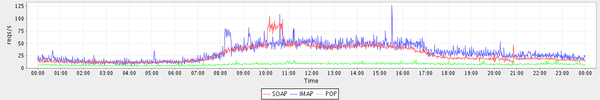 Host zm06.stanford.edu: Mailboxd: Request Rate by Client Protocol
