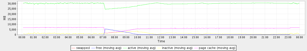avg(swapped) = 0.00 avg(free) = 507.91 avg(active) = 29716.54 avg(inactive) = 1274.82 avg(page cache) = 6158.87