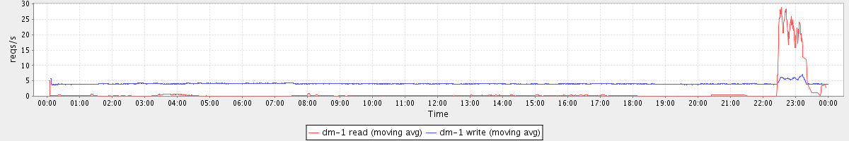 avg(dm-1 read) = 25.49 avg(dm-1 write) = 19.30