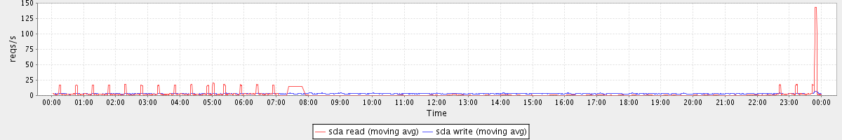 avg(sda1 read) = 21.79 avg(sda1 write) = 44.26