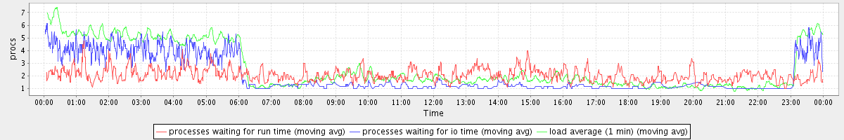 avg(processes waiting for run time) = 1.24 avg(processes waiting for io time) = 1.32 avg(load average (1 min)) = 2.63