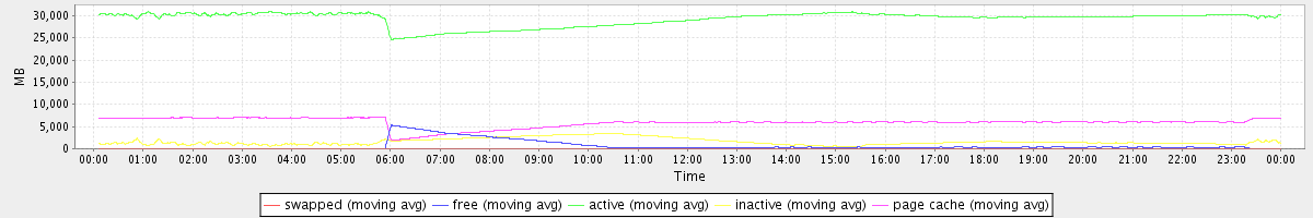 avg(swapped) = 0.23 avg(free) = 657.14 avg(active) = 29268.36 avg(inactive) = 1591.57 avg(page cache) = 5900.51