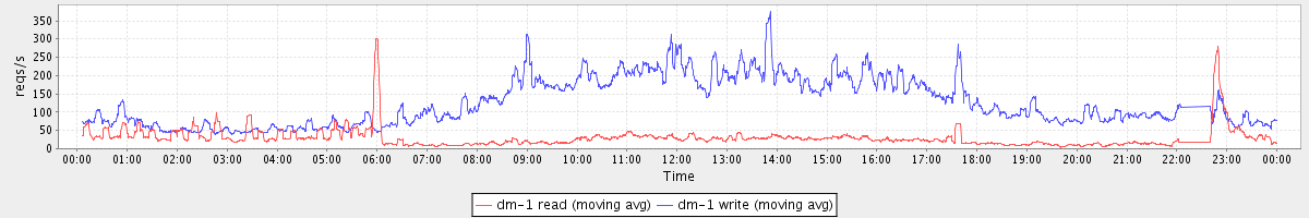 avg(dm-1 read) = 324.13 avg(dm-1 write) = 793.70