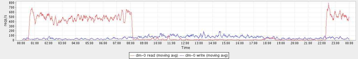 avg(dm-0 read) = 3614.72 avg(dm-0 write) = 217.55