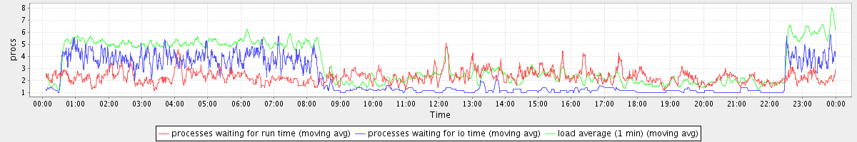 avg(processes waiting for run time) = 1.65 avg(processes waiting for io time) = 1.64 avg(load average (1 min)) = 3.36