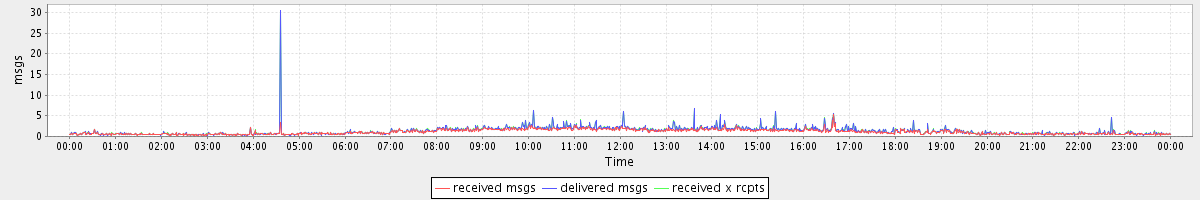 avg(received msgs) = 1.07 avg(delivered msgs) = 1.26 avg(received x rcpts) = 1.29