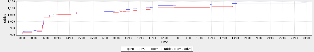 avg(open_tables) = 1078.61 avg(opened_tables (cumulative)) = 1094.13