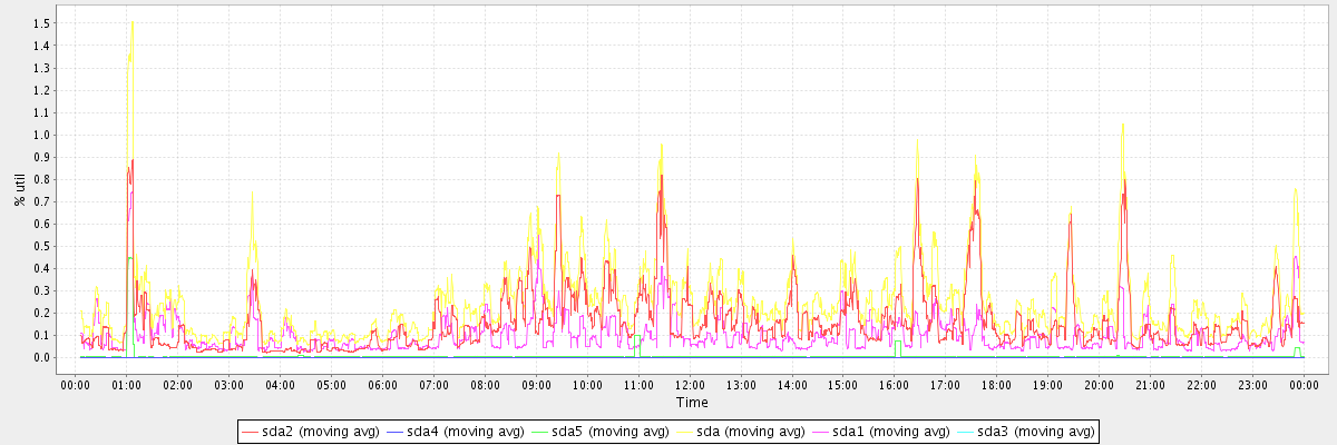 avg(sda2) = 0.16 avg(sda4) = 0.00 avg(sda5) = 0.01 avg(sda) = 0.25 avg(sda1) = 0.10 avg(sda3) = 0.00