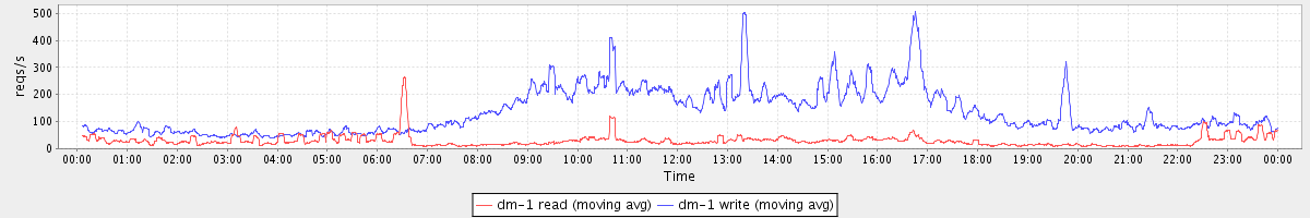 avg(dm-0 read) = 3074.94 avg(dm-0 write) = 218.60