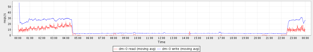 avg(dm-0 read) = 19.48 avg(dm-0 write) = 44.87
