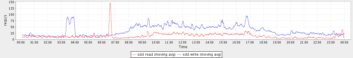 avg(sda1 read) = 31.54 avg(sda1 write) = 45.32