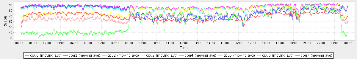 avg(cpu0) = 69.32 avg(cpu1) = 77.77 avg(cpu2) = 61.43 avg(cpu3) = 80.52 avg(cpu4) = 87.23 avg(cpu5) = 85.04 avg(cpu6) = 70.98 avg(cpu7) = 85.83
