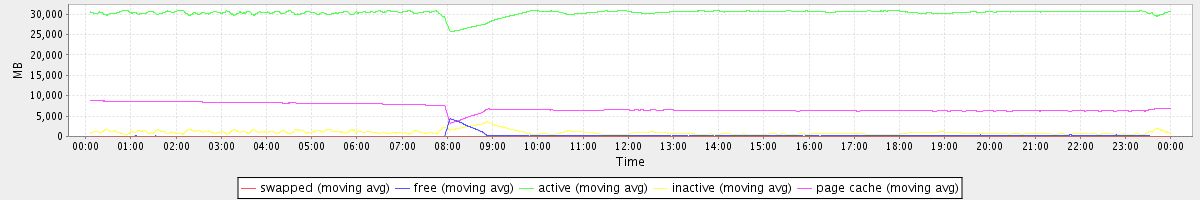 avg(swapped) = 0.23 avg(free) = 226.05 avg(active) = 30274.70 avg(inactive) = 971.42 avg(page cache) = 6933.90