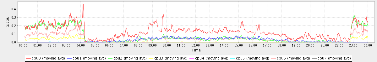 avg(cpu0) = 0.13 avg(cpu1) = 0.02 avg(cpu2) = 0.07 avg(cpu3) = 0.01 avg(cpu4) = 0.00 avg(cpu5) = 0.00 avg(cpu6) = 0.04 avg(cpu7) = 0.00