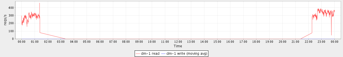 avg(dm-1 read) = 739.21 avg(dm-1 write) = 0.37